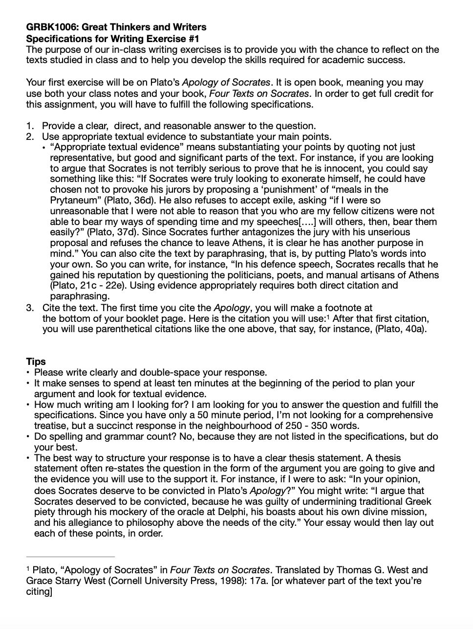 As I frequently reminded the students, if they did all their writing assignments and missed no more than three classes, they would pass the course regardless of whatever else they did. If they wanted to do better than that, they would have to write a paper themselves (and also do well on the exam).