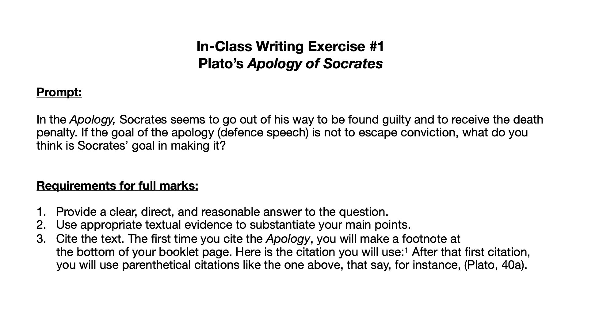 I also made it very, very easy to pass the course. In order to get a D, all students needed to do was come to class and complete their five in-class writing exercises. The writing exercises were all related to the theme of the course and, to a limited extent, verified their reading.
